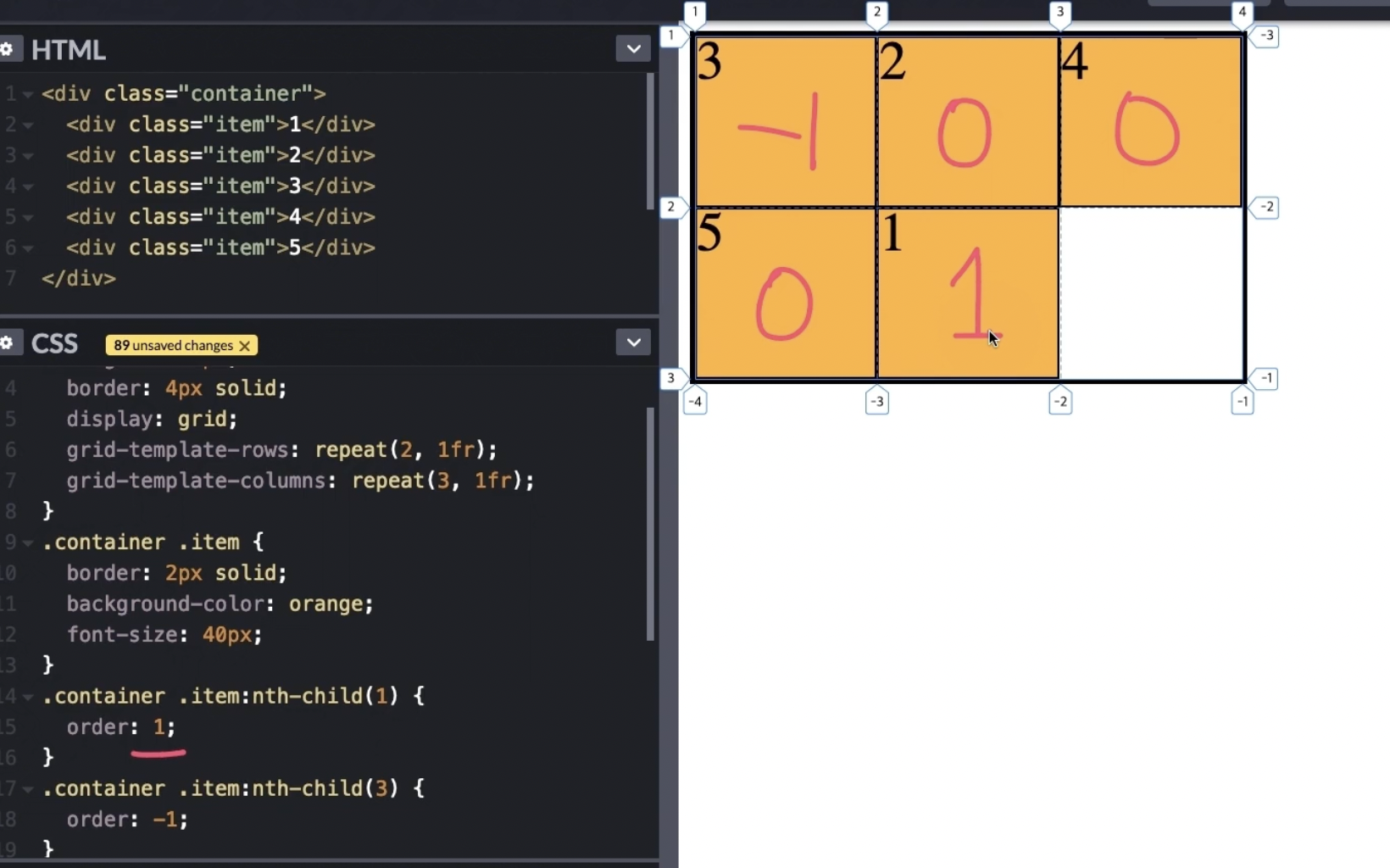 순서를 바꾸어주는 order 속성 : 숫자가 작을수록 앞으로 이동