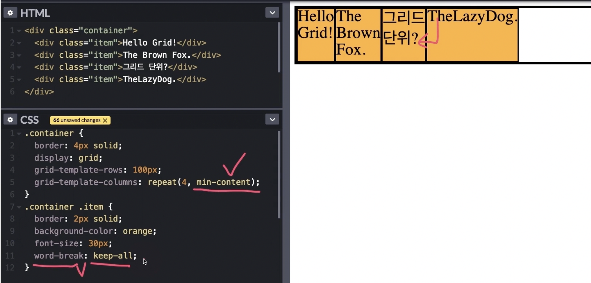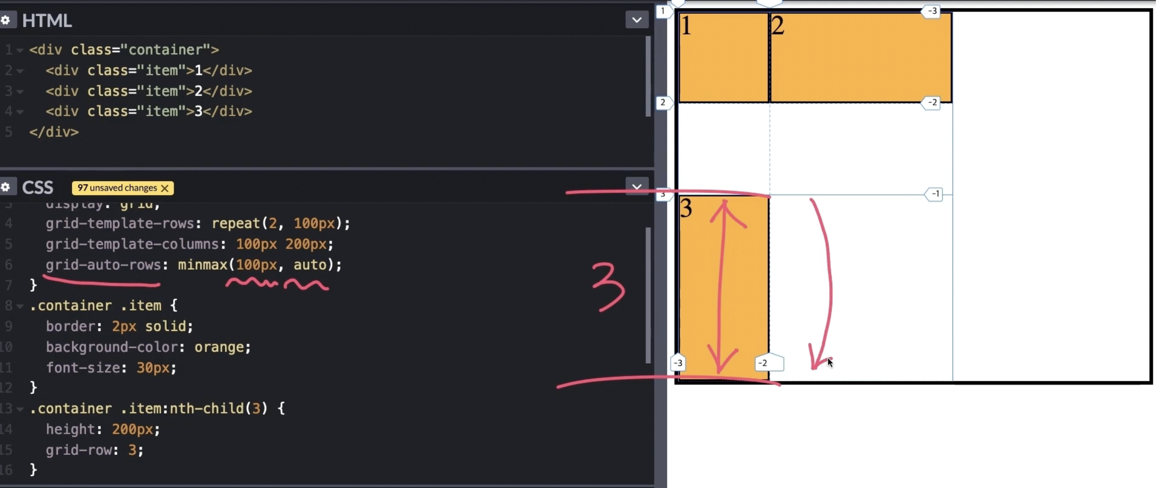 grid-auto-rows : minmax(100px, auto) => 암시적 행에 최소최대값을 지정할 수 있다.