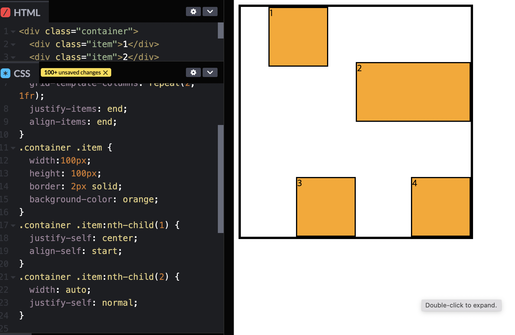 아이템 전체에 적용하기 위해 container에 justify-items, align-items를 사용한다.