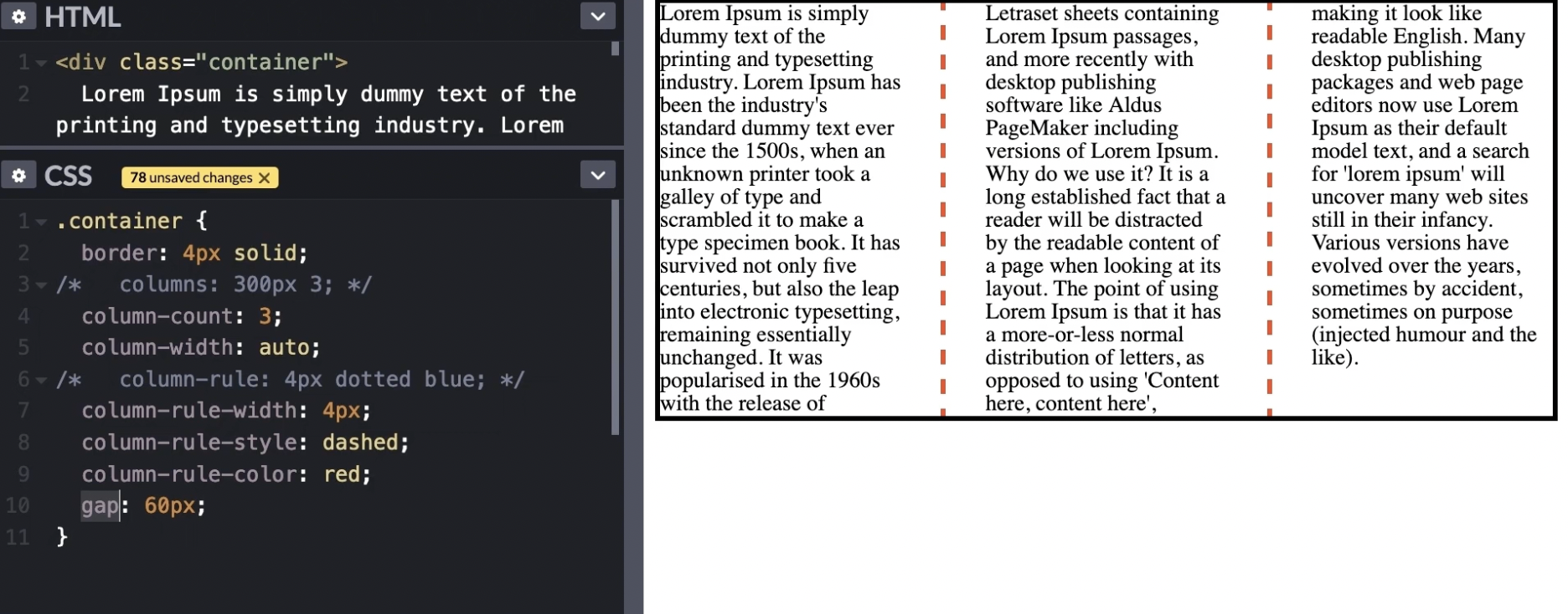 column-gap : 40px; => 단과 단 사이 거리 (그냥 gap만 써도 가능)