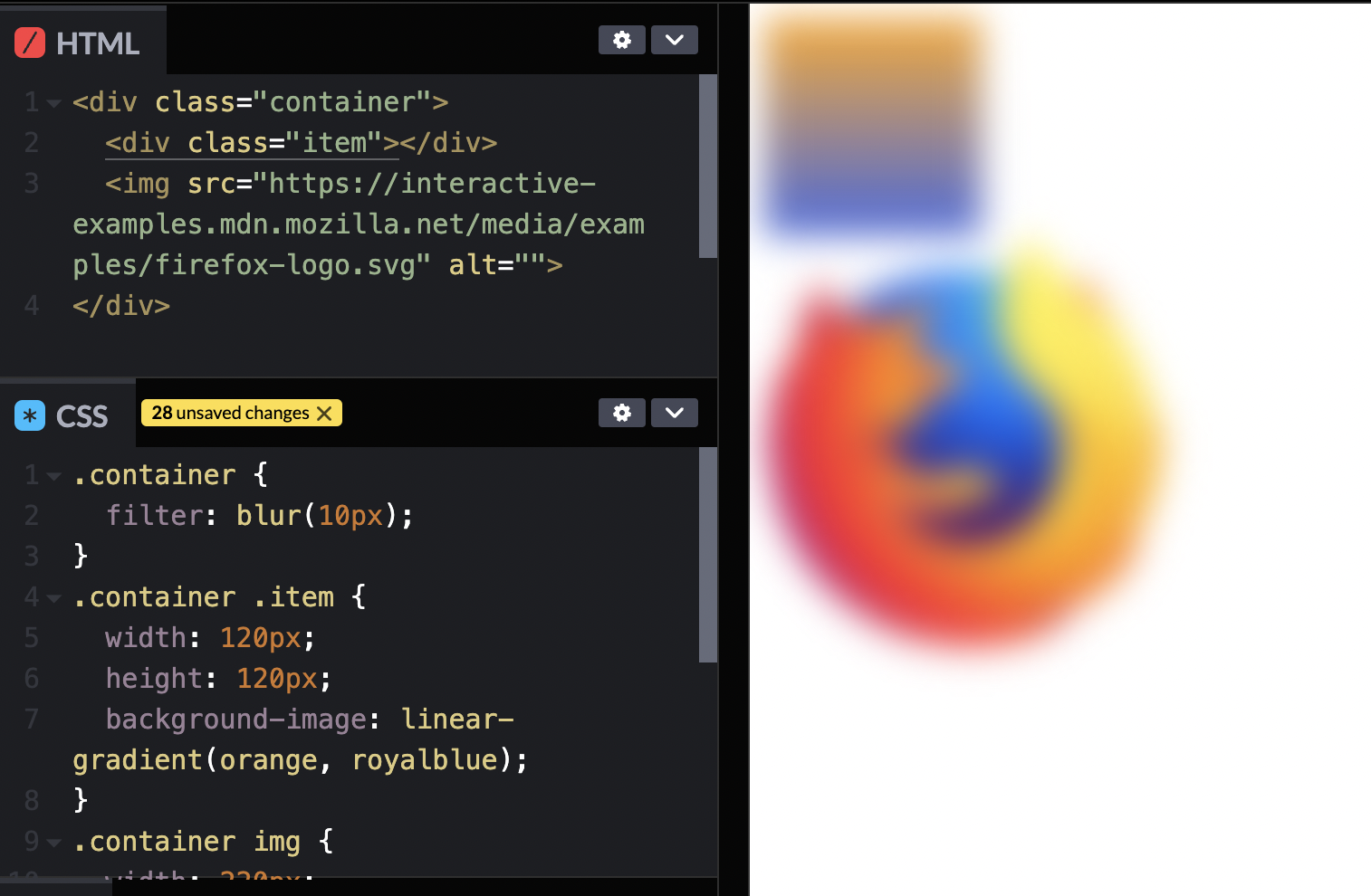 filter : blur(10px) => 흐림처리가 된다. px값이 커질수록 더 흐려진다.