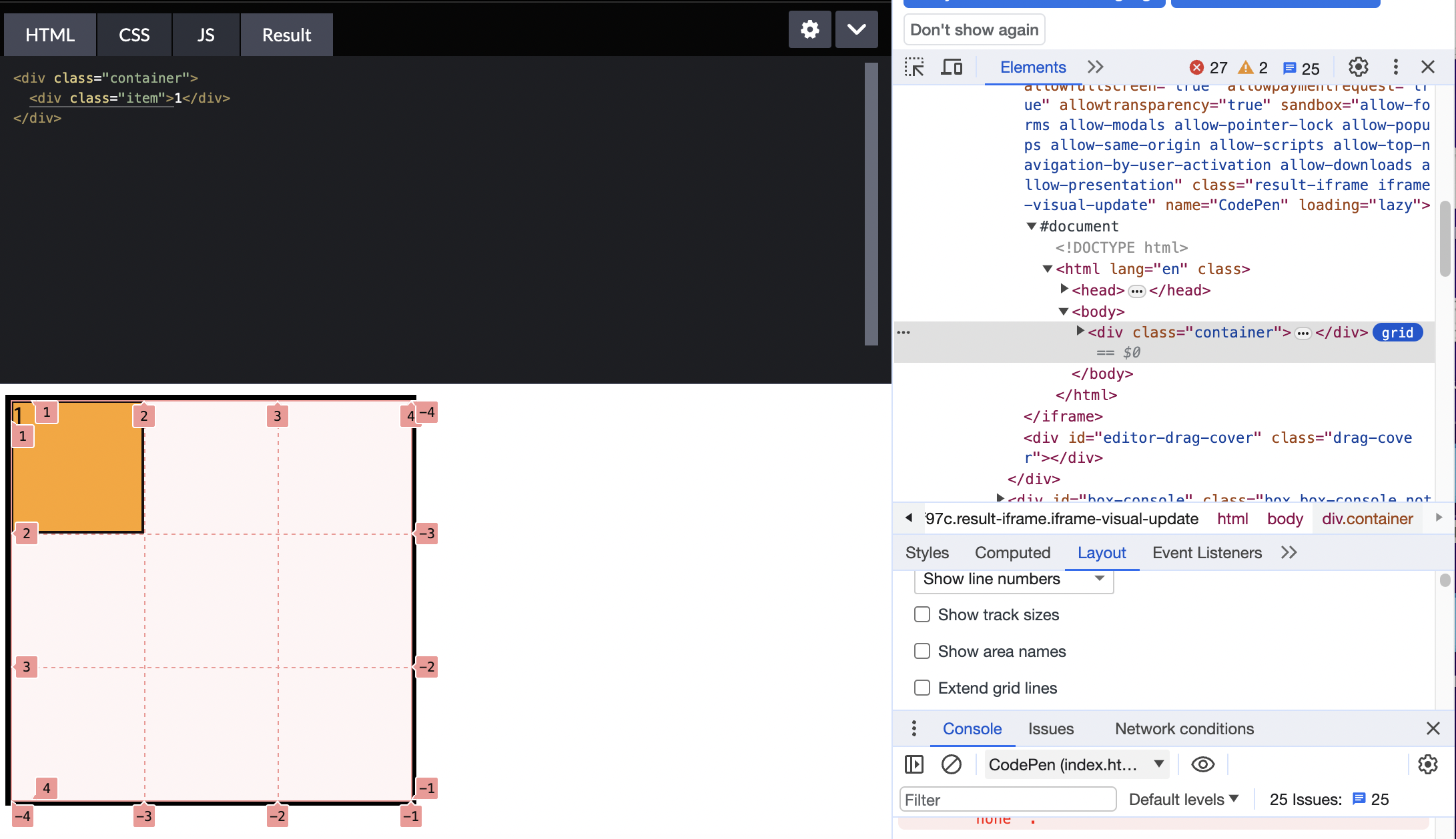 개발자 도구를 통해 grid를 클릭하면 line의 번호를 알 수 있다.