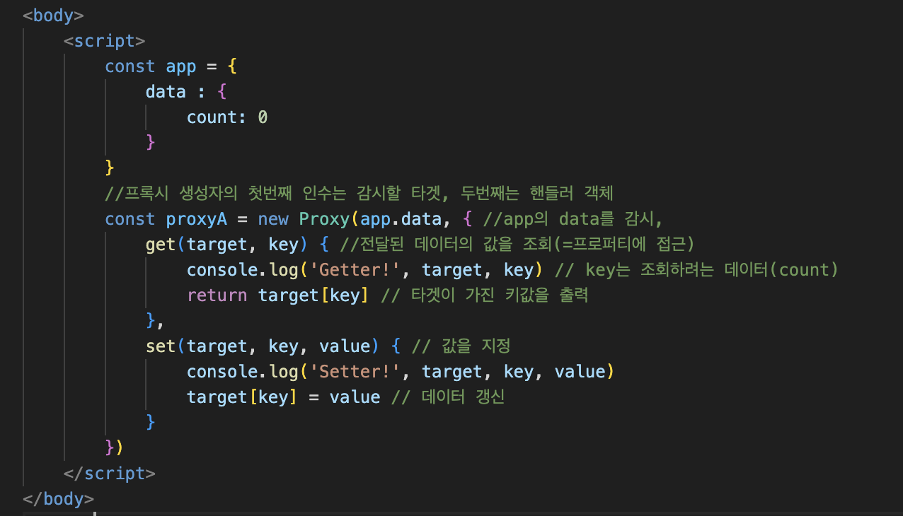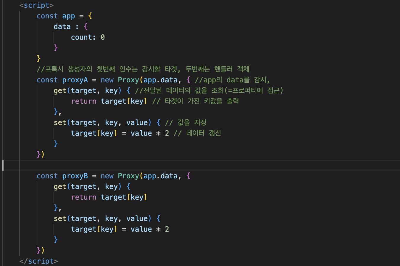 - 두 개의 매개변수를 사용하여 Proxy를 생성