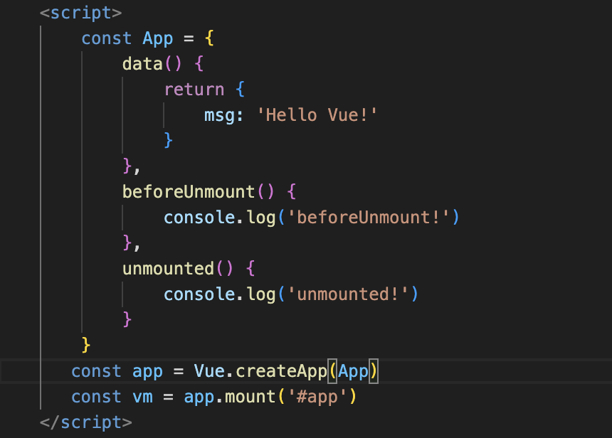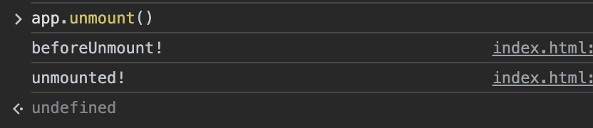 app.unmount() 를 실행하면 화면에 아무것도 나오지 않는다.