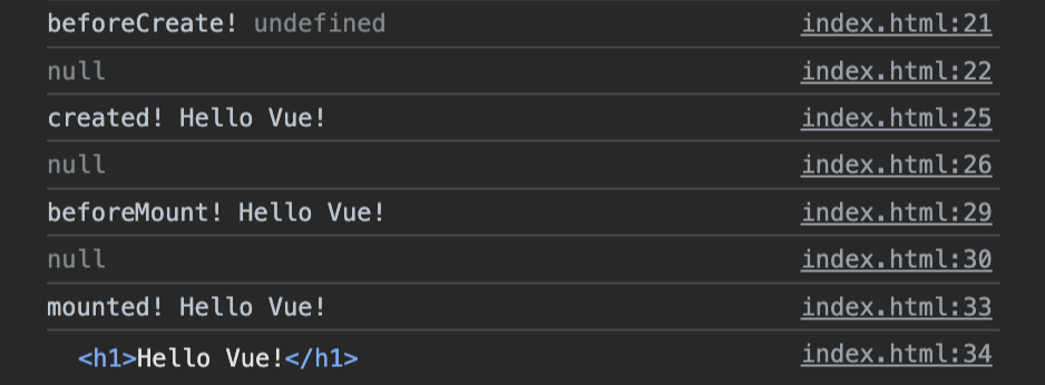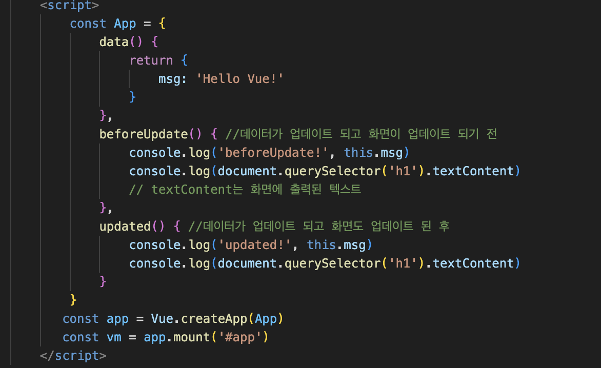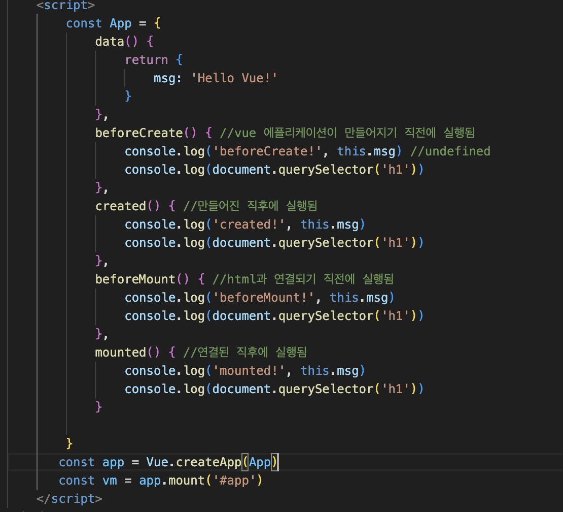 mounted에서만 DOM과 연결된 직후 h1나옴
