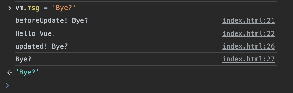 인스턴스 속성 : vm.$data 이런식으로 $data, $props, $el 등 인스턴스 속성들을 사용할 수 있다.