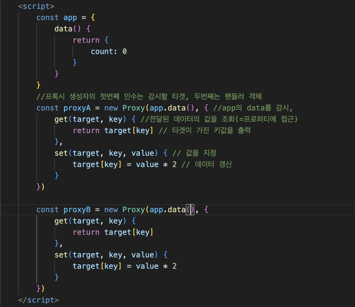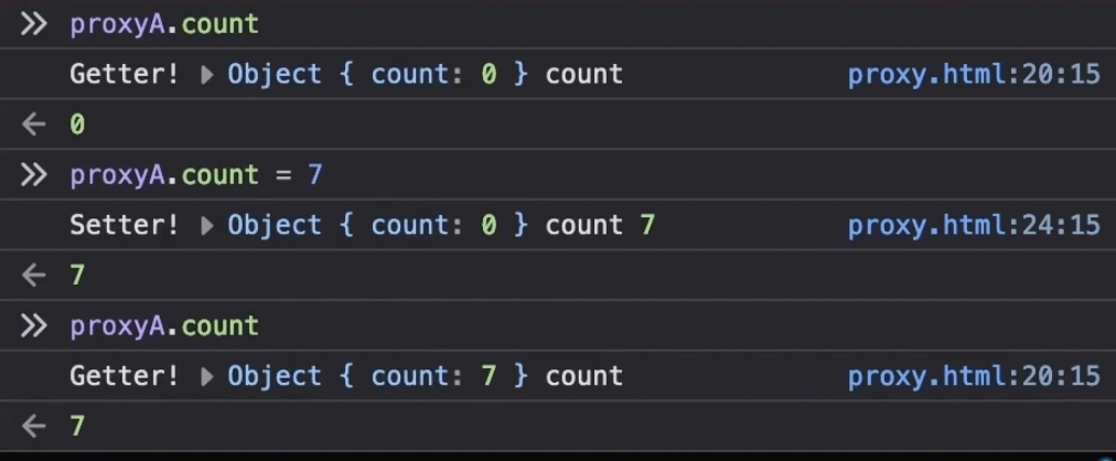 proxyA에 값을 할당해주면 그 값이 proxyB에서도 그대로 출력된다.