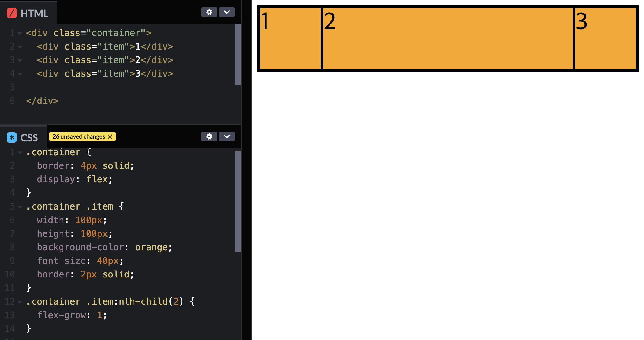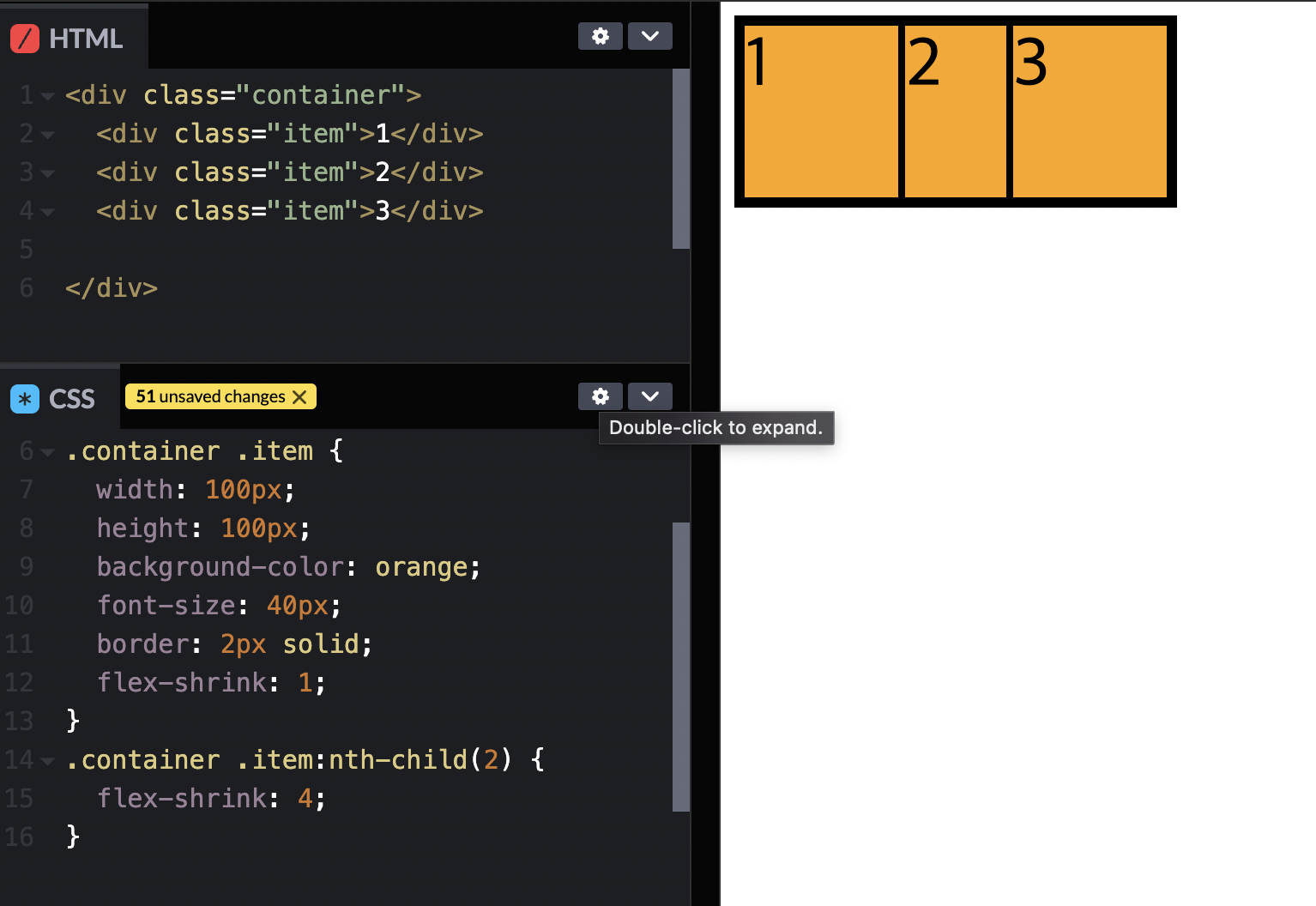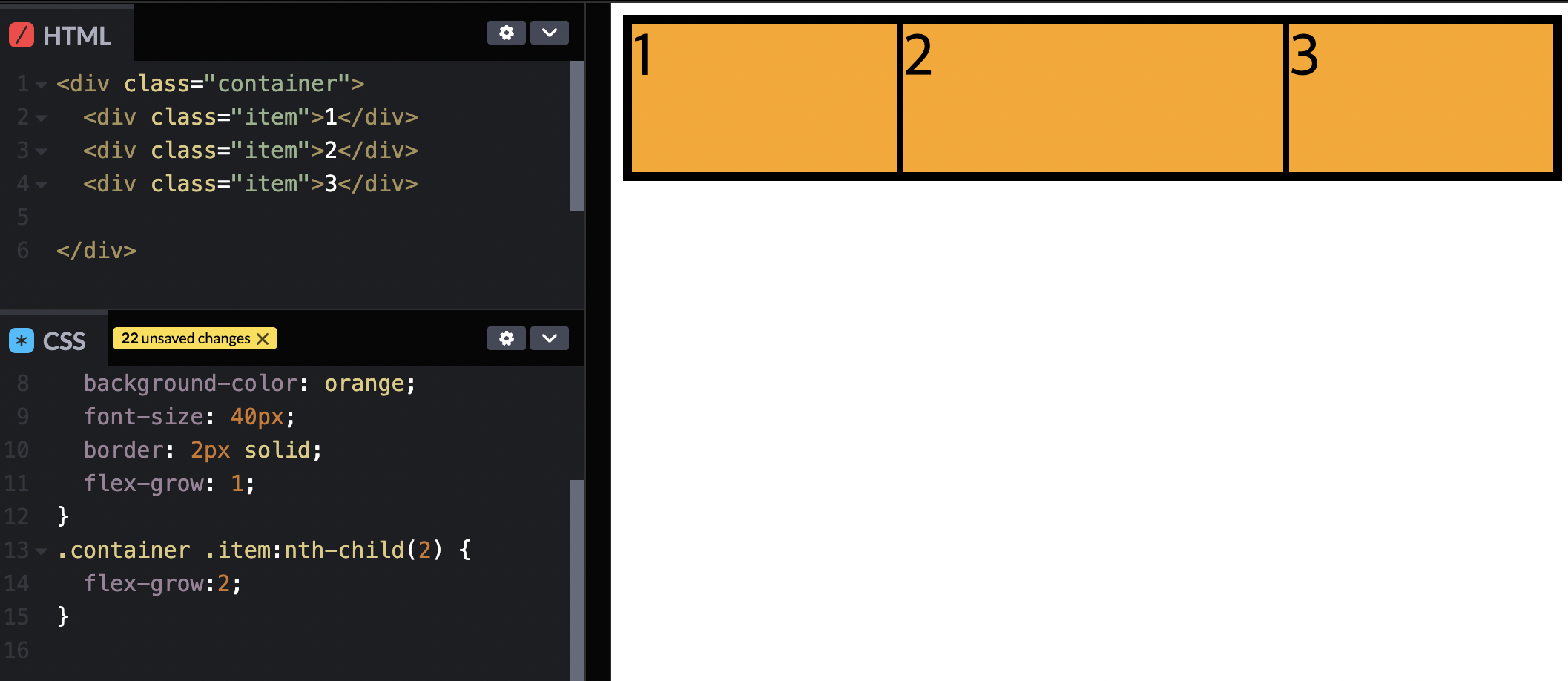 => 아이템1, 3은 늘어나지 않기 때문에 flex-grow가 1이든 2이든 상관없다.
