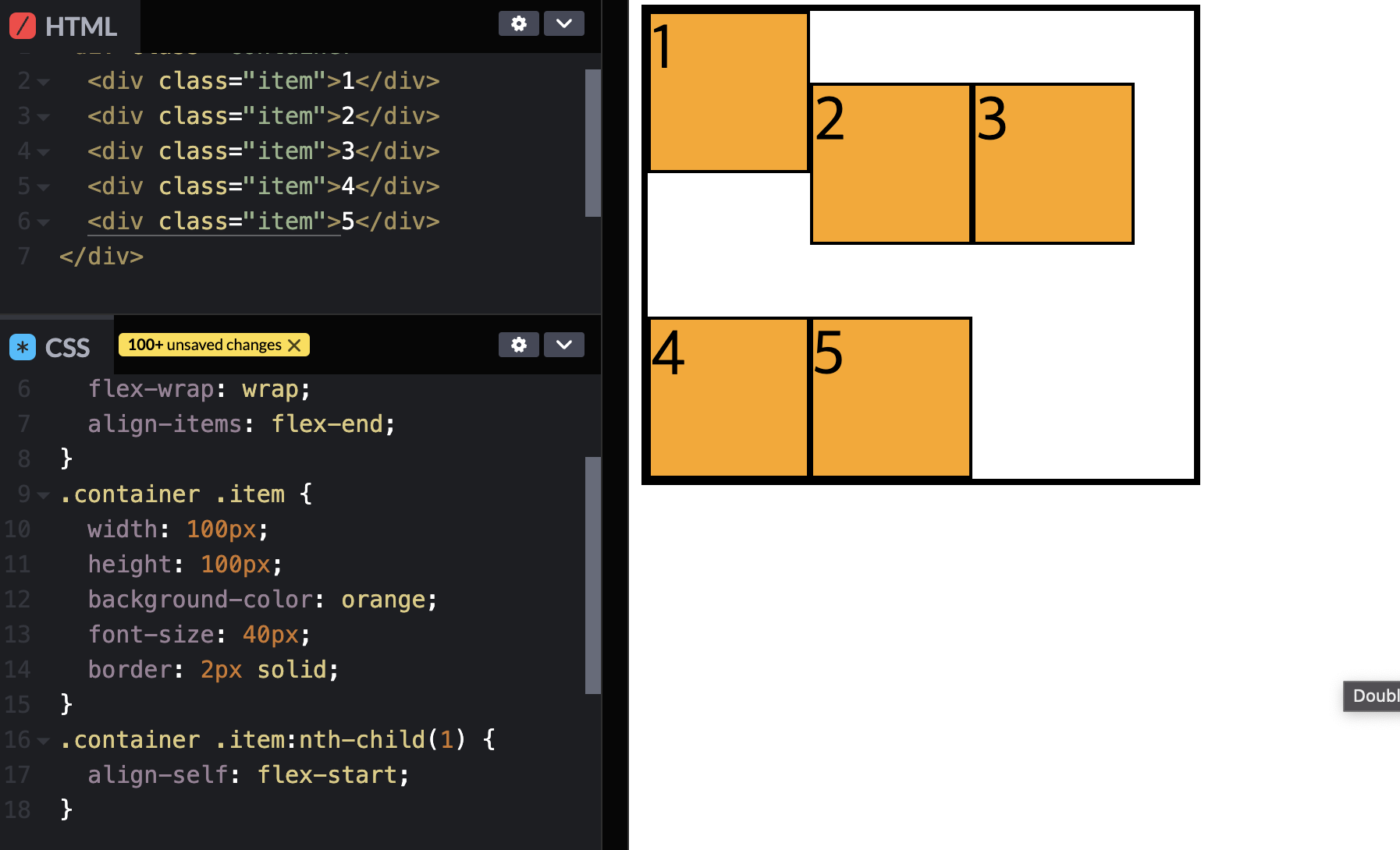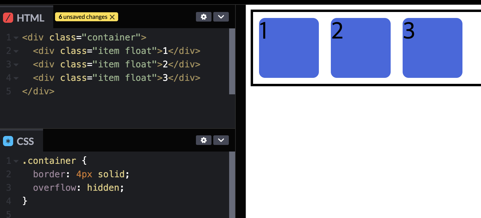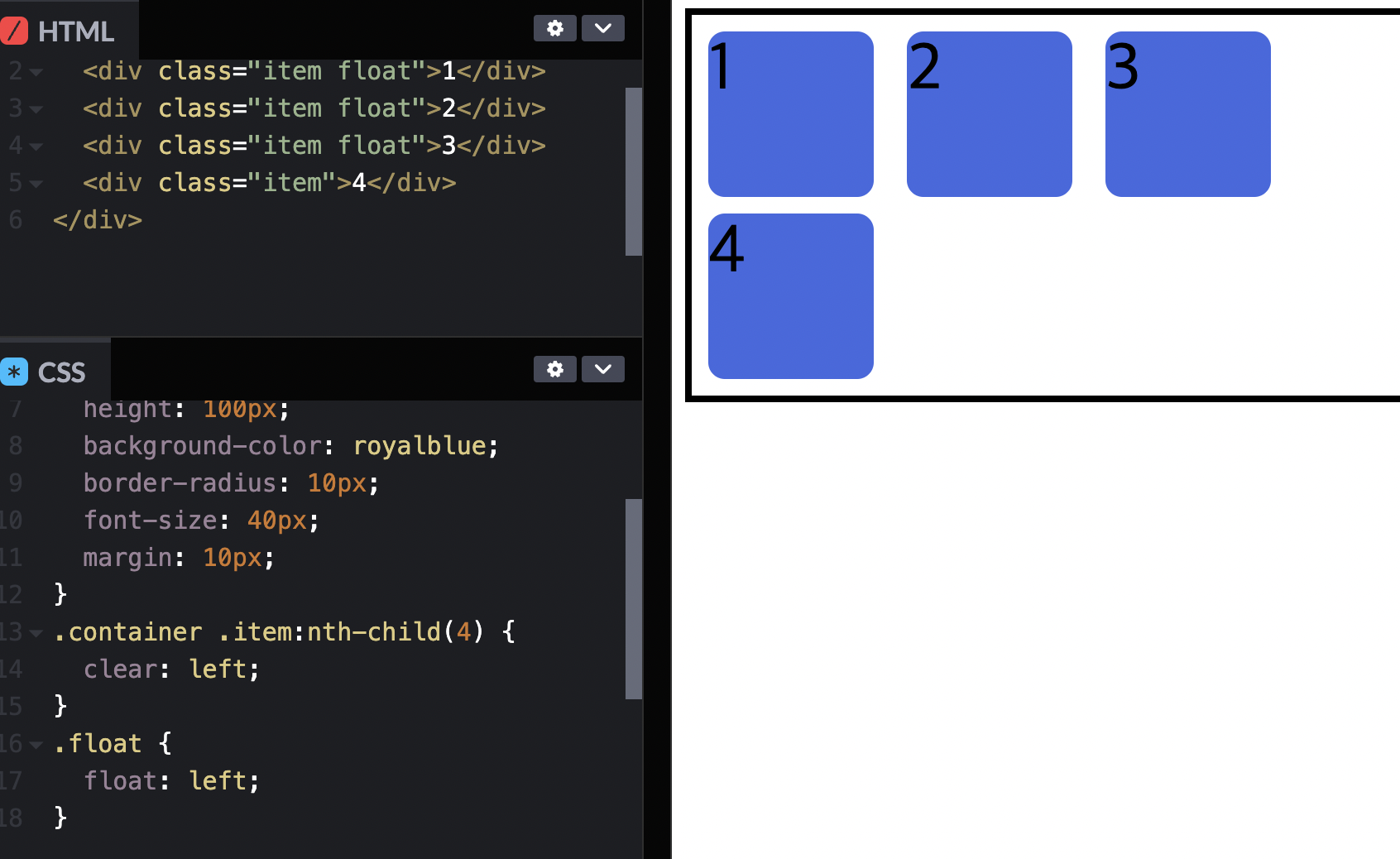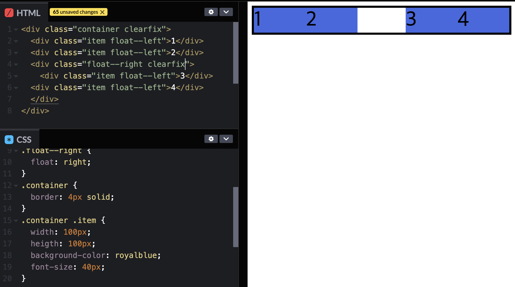 숫자를 순서대로 보이게 하기위해서는 3,4를 float--right로 묶고 속성을 float--left로 바꿔준다.
