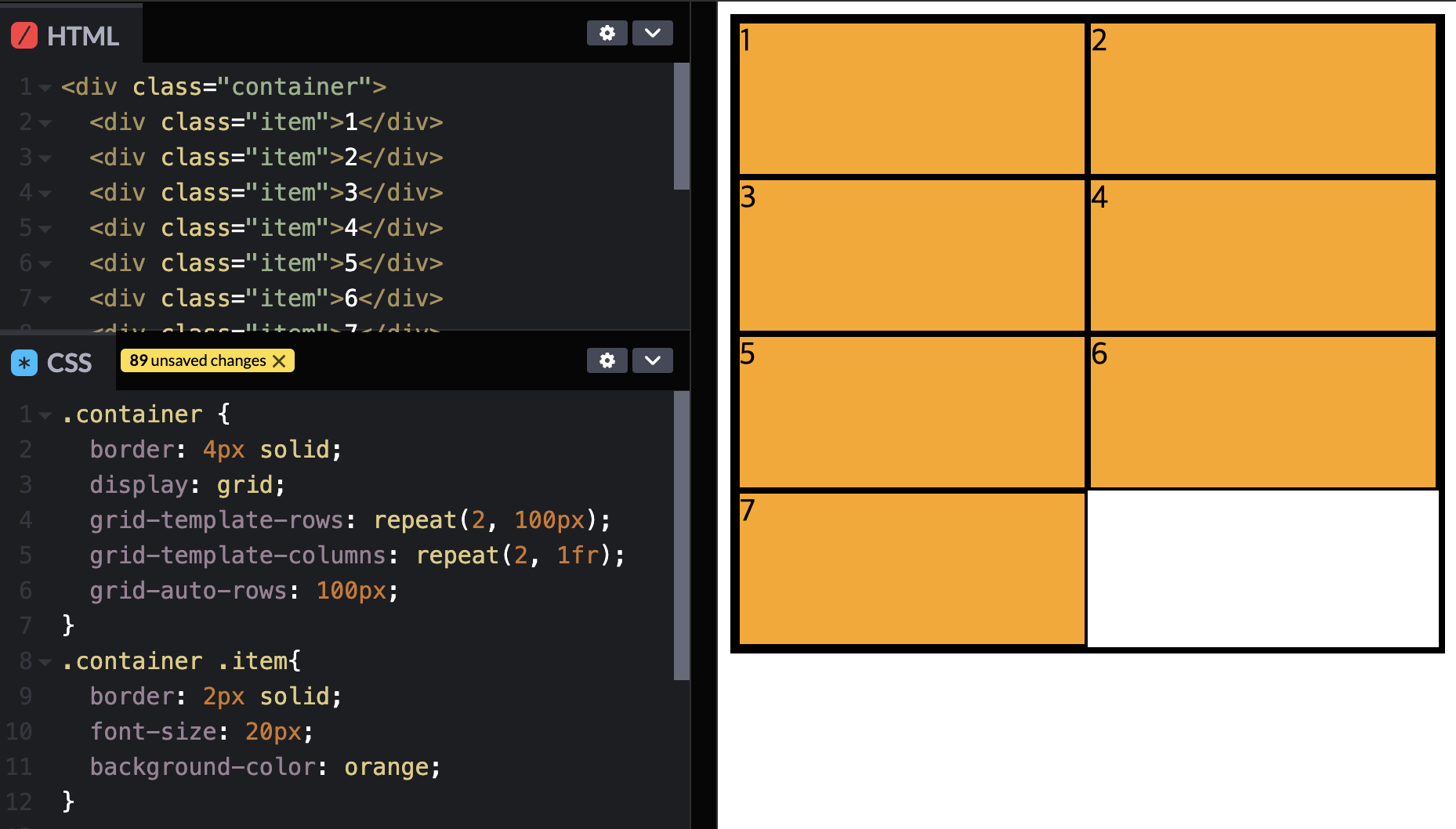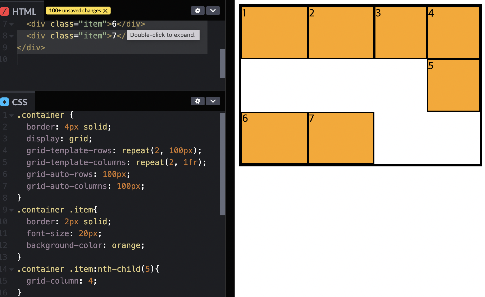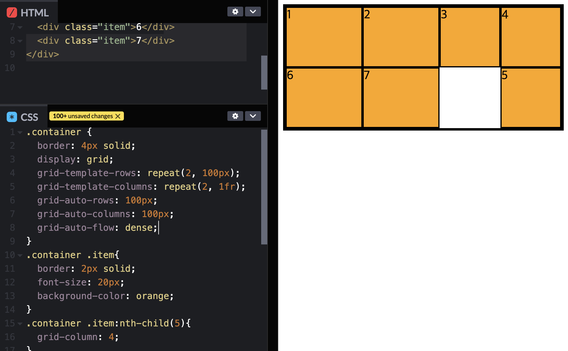 5,6,7은 사용할 수 없는 템플릿이다. => grid-auto-rows: 100px 를 사용하여 높이를 100px로 맞춰준다.