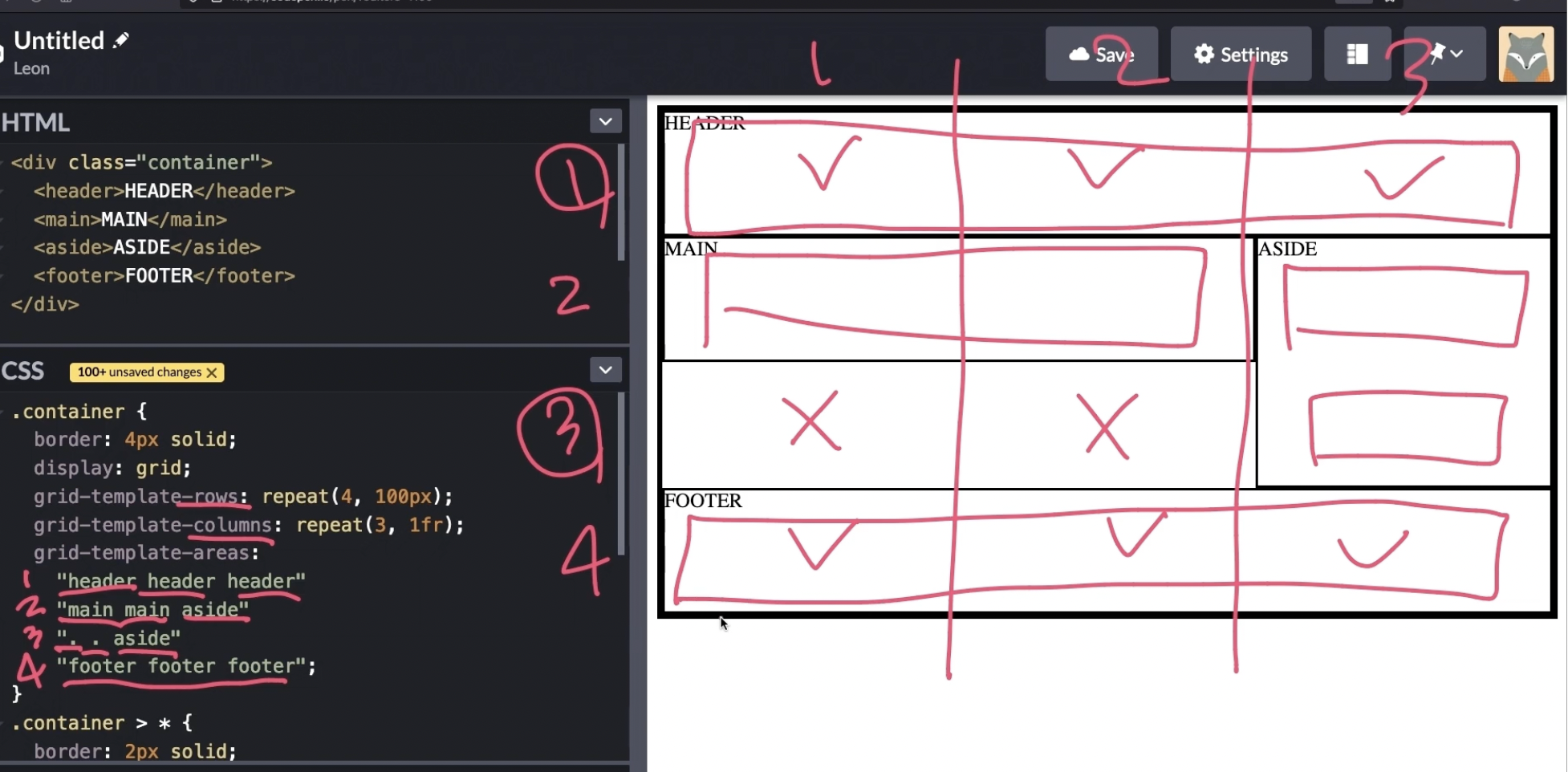 grid-template-areas를 사용하여 레이아웃을 그린다.