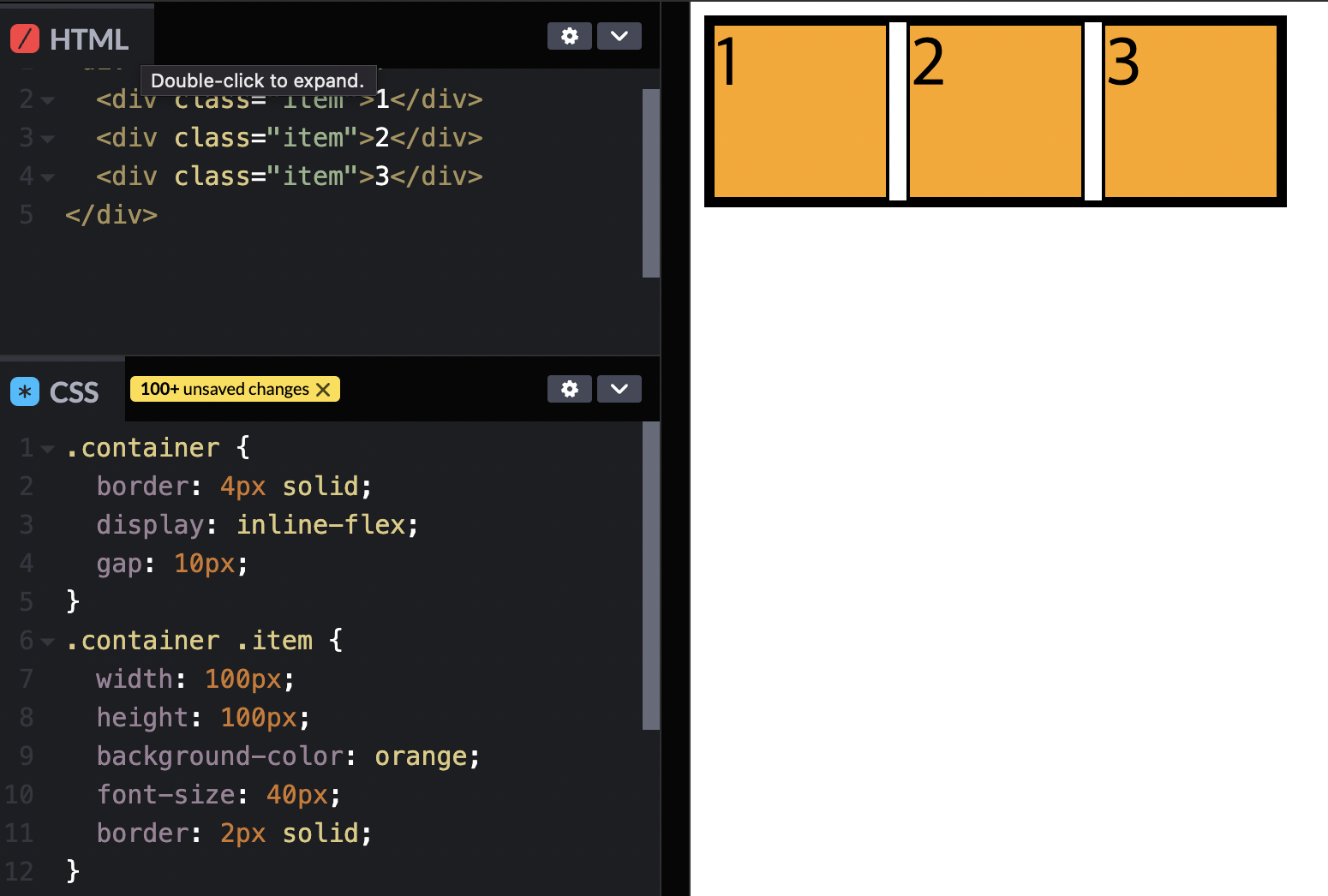 (flex는 block => 수직으로 쌓이고, 가로로 늘어나려고 함 / inline-flex는 inline => 수평으로 쌓이고, 가로 너비는 줄어들려고 시도한다.)