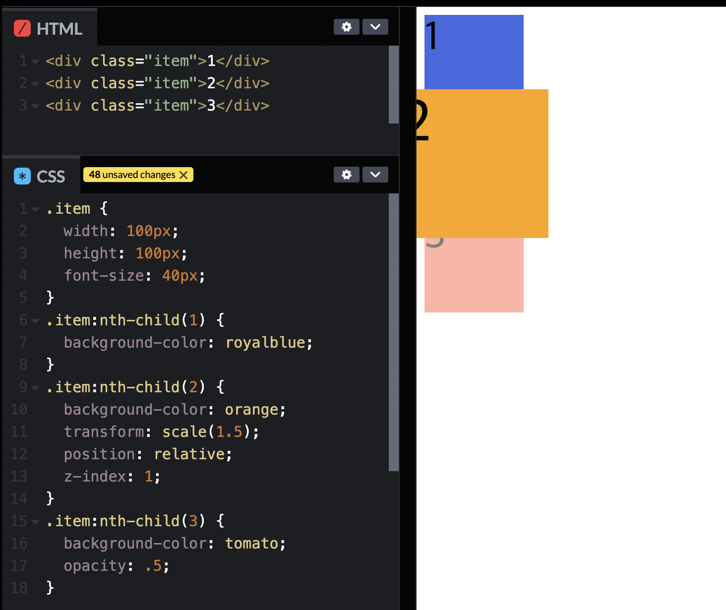 숫자가 커지면 순서가 밀리게 된다. 작을수록 앞으로 이동하며 음수 값도 사용가능하다.