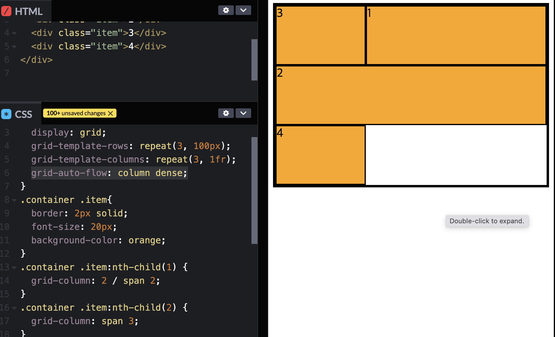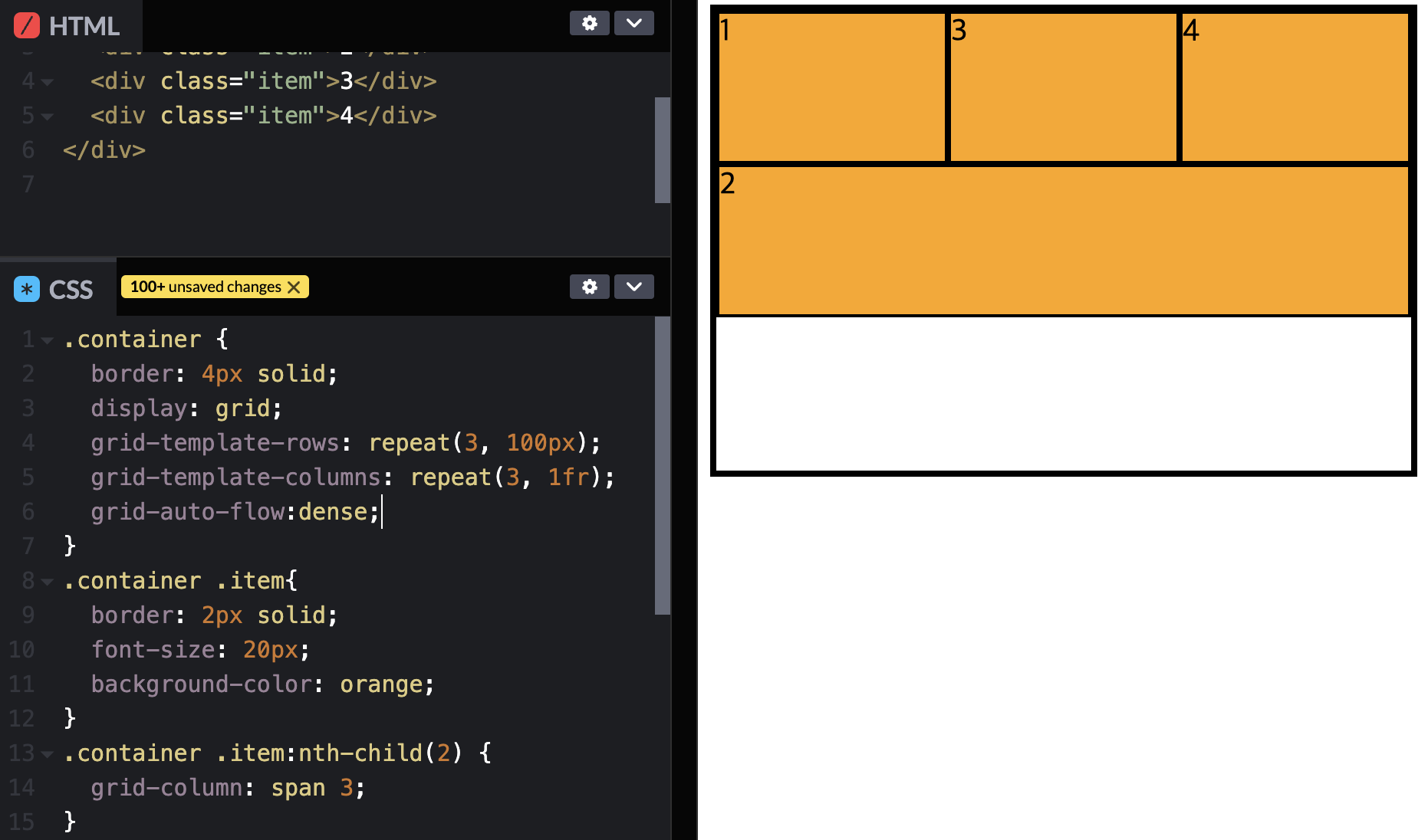 grid-auto-flow : dense => 빈공간을 매우면서 정렬하겠다는 의미