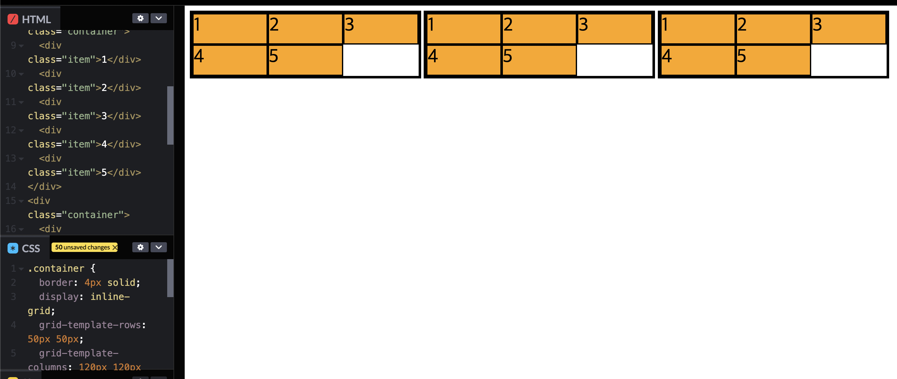 1fr 1fr 1fr은 3개의 열이 만들어지고 1 공간비율(fraction)을 갖는다.