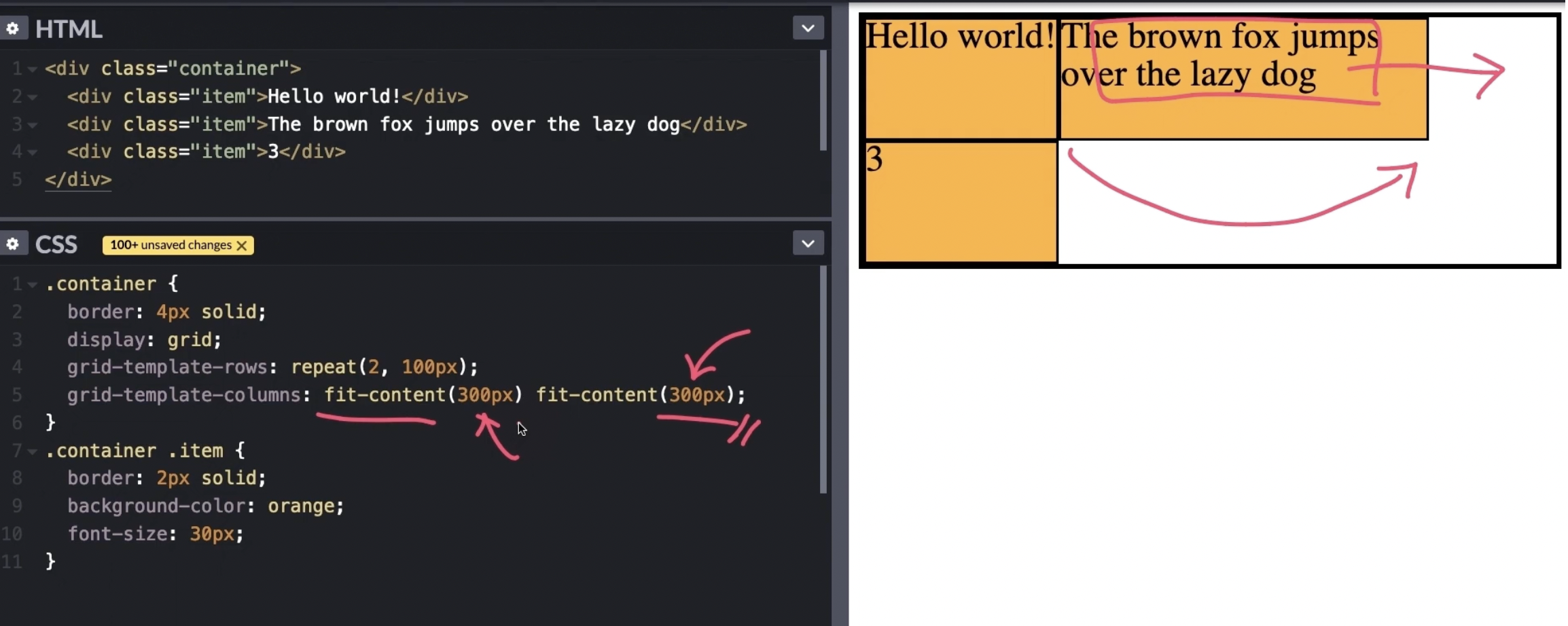 fit content(제한너비) : 컨텐트 너비에 딱 맞추되 최대 값을 괄호로 가진다.