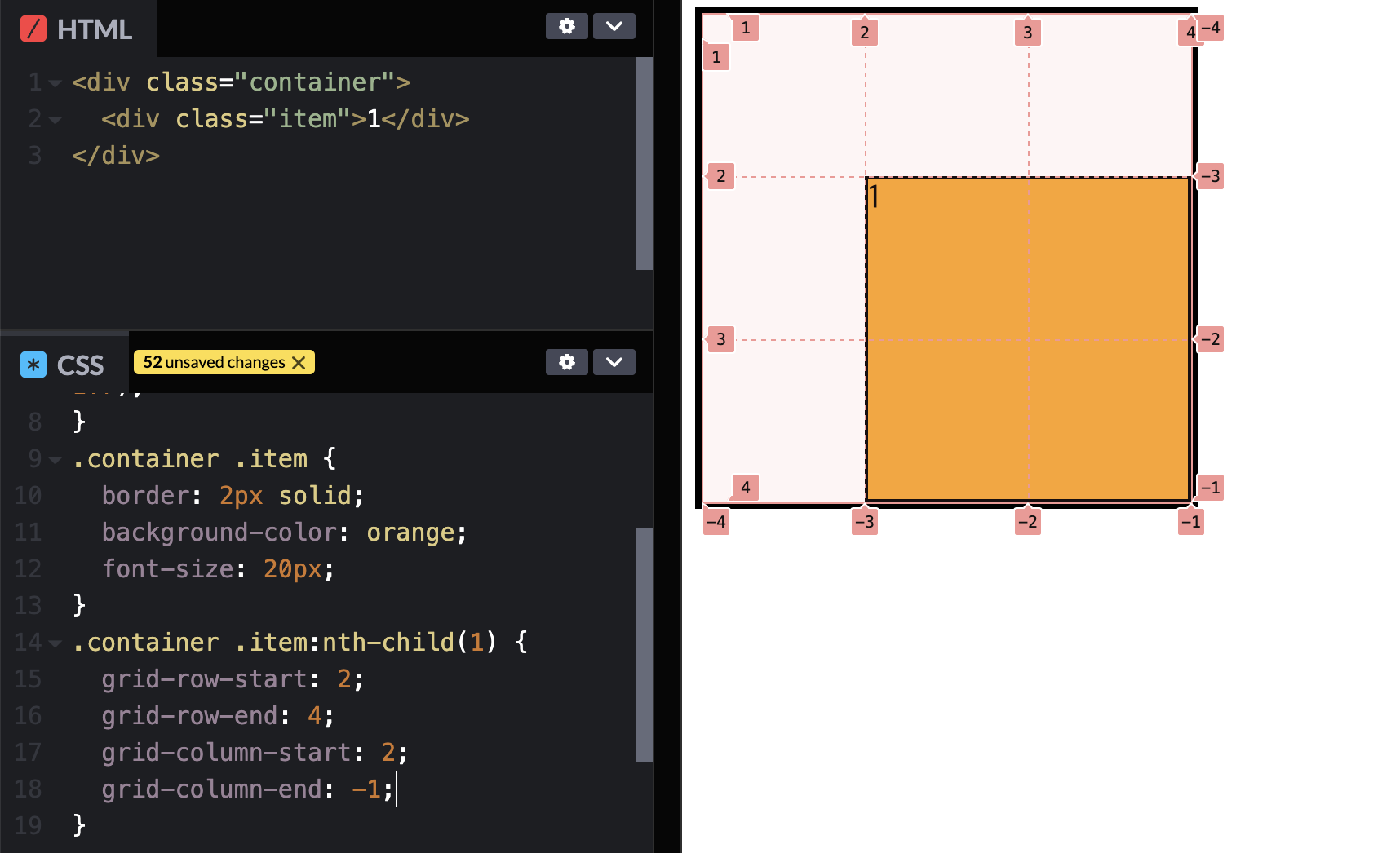 grid-row(column)-start(end) : 각 행, 열 의 라인 번호중에 몇 번째 라인에서 시작할 것인지(끝낼 것인지)를 명시