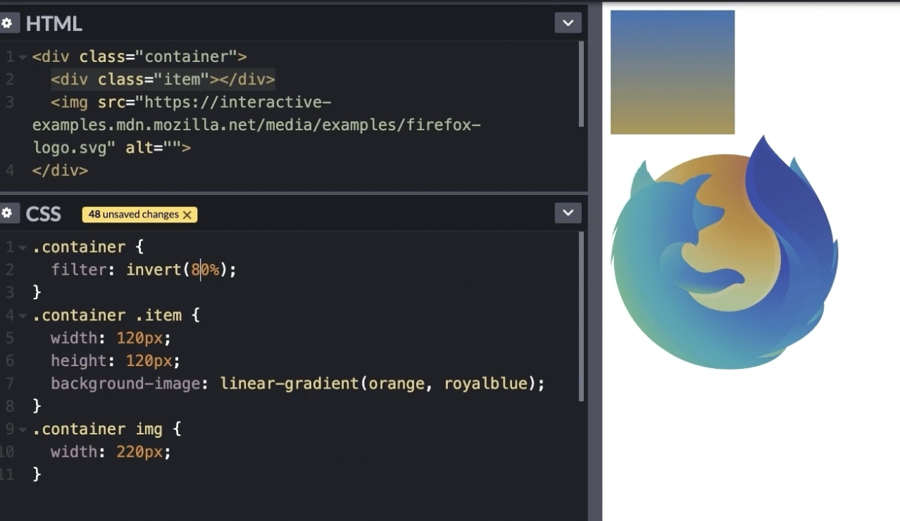 filter : invert(80%) => 색상반전 / 기본값 100%