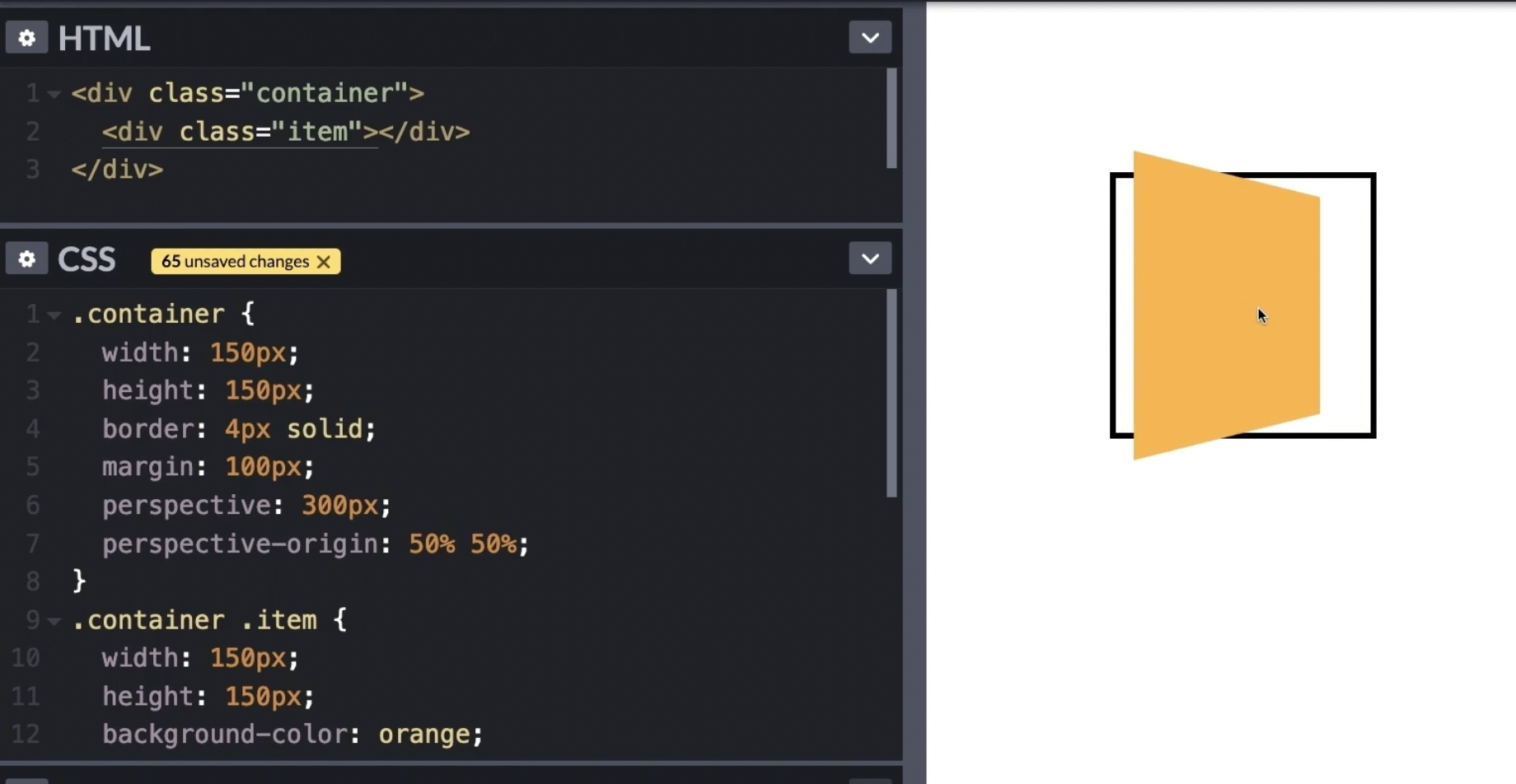 perspective는 속성으로도 쓰일 수 있다. 변환이 일어날 아이템의 부모에 적용해야한다. (요소 상위에 적용)