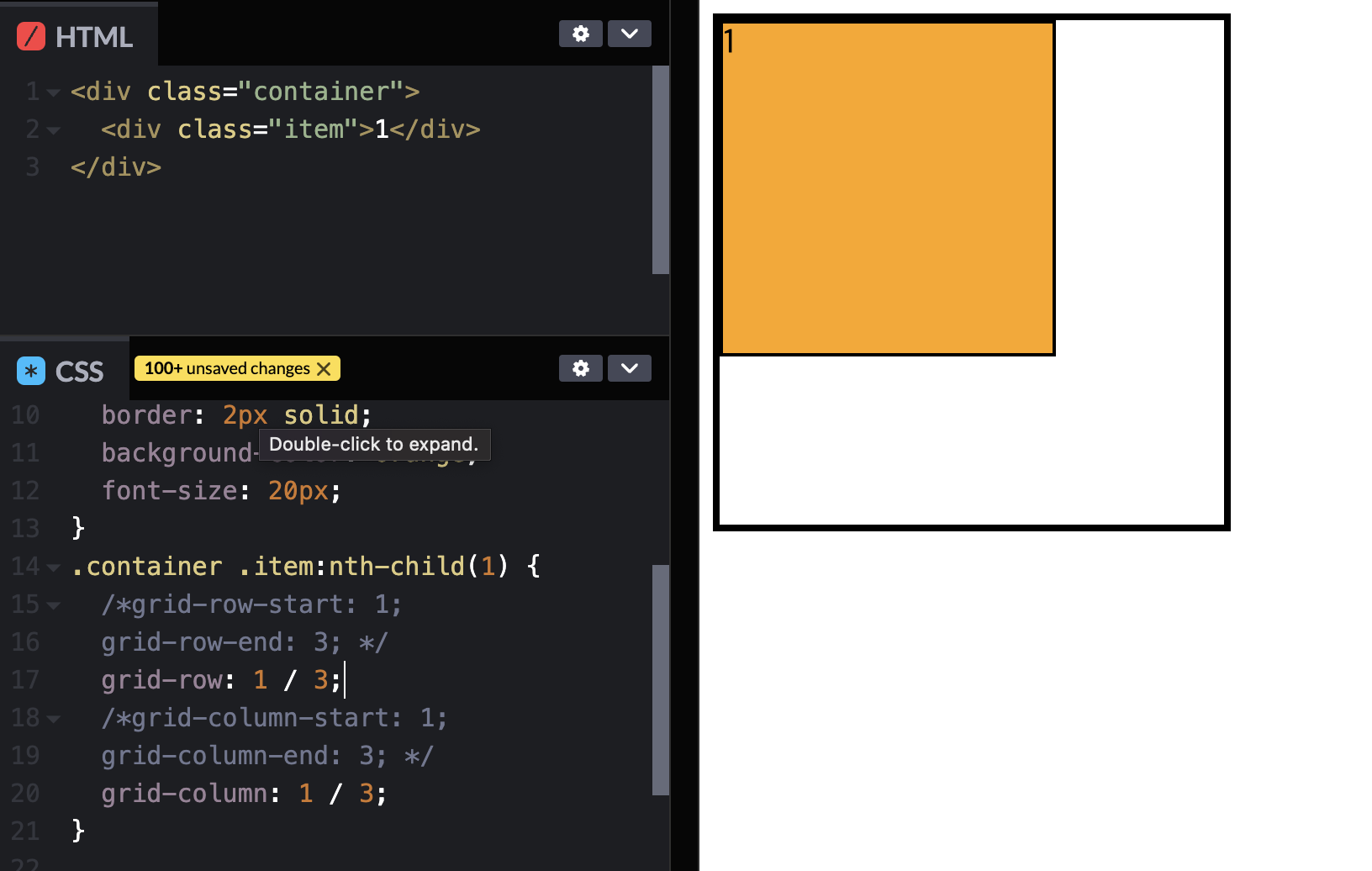 grid-row(column)-start(end): span 2;