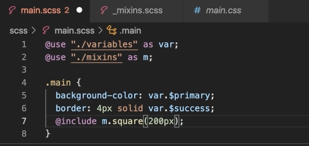 - 중첩 => @mixin에 다른 @mixin을 @include를 사용해 가지고 올 수 있다.