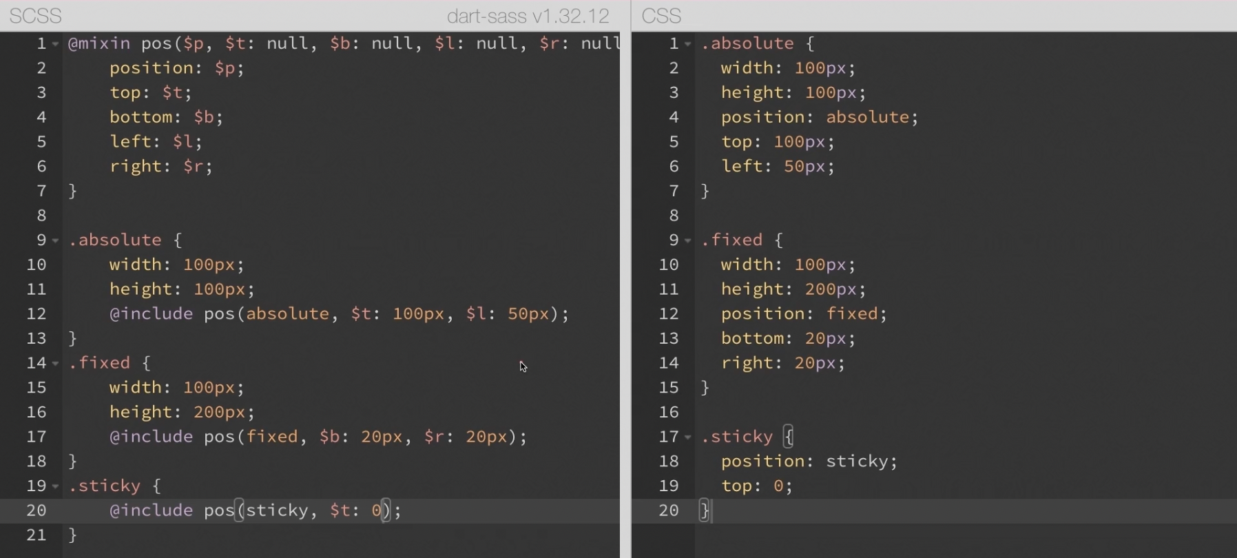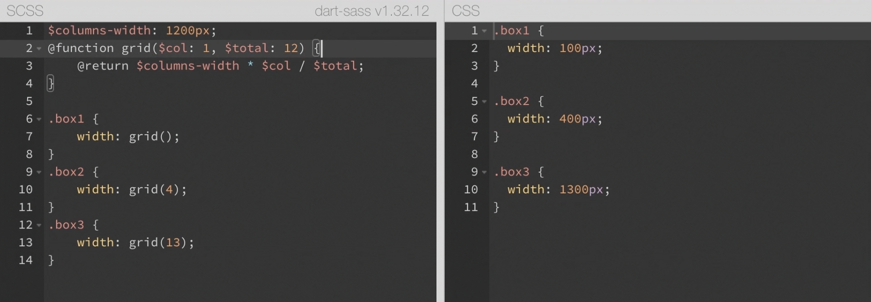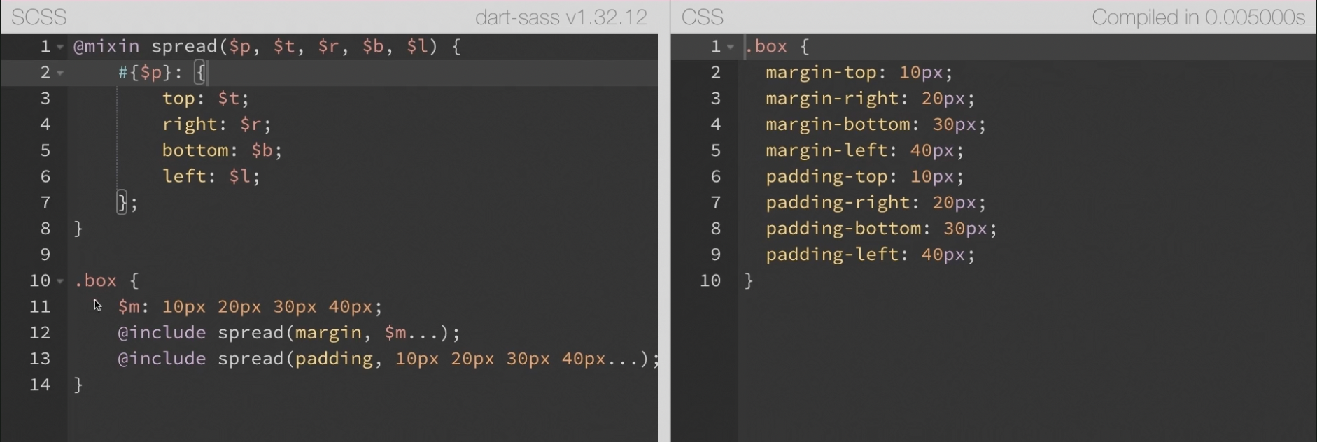- 매개변수를 만들어 범용화해서 스타일을 재활용 / ($size: 기본값)을 지정해주어야 다른 값을 주었을 때 적용 가능