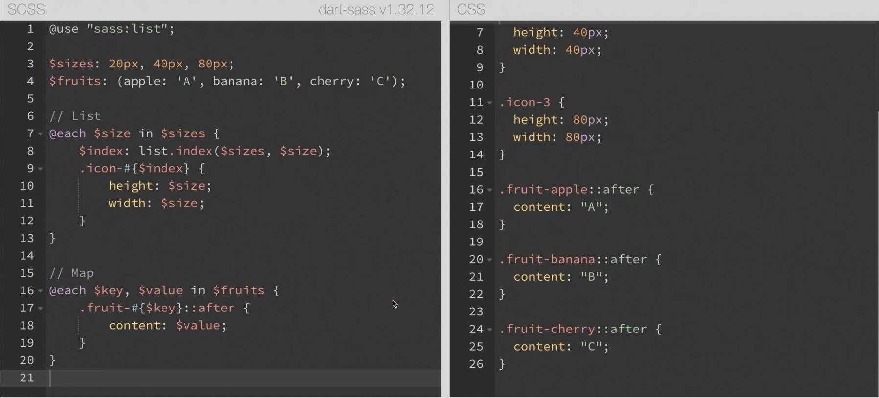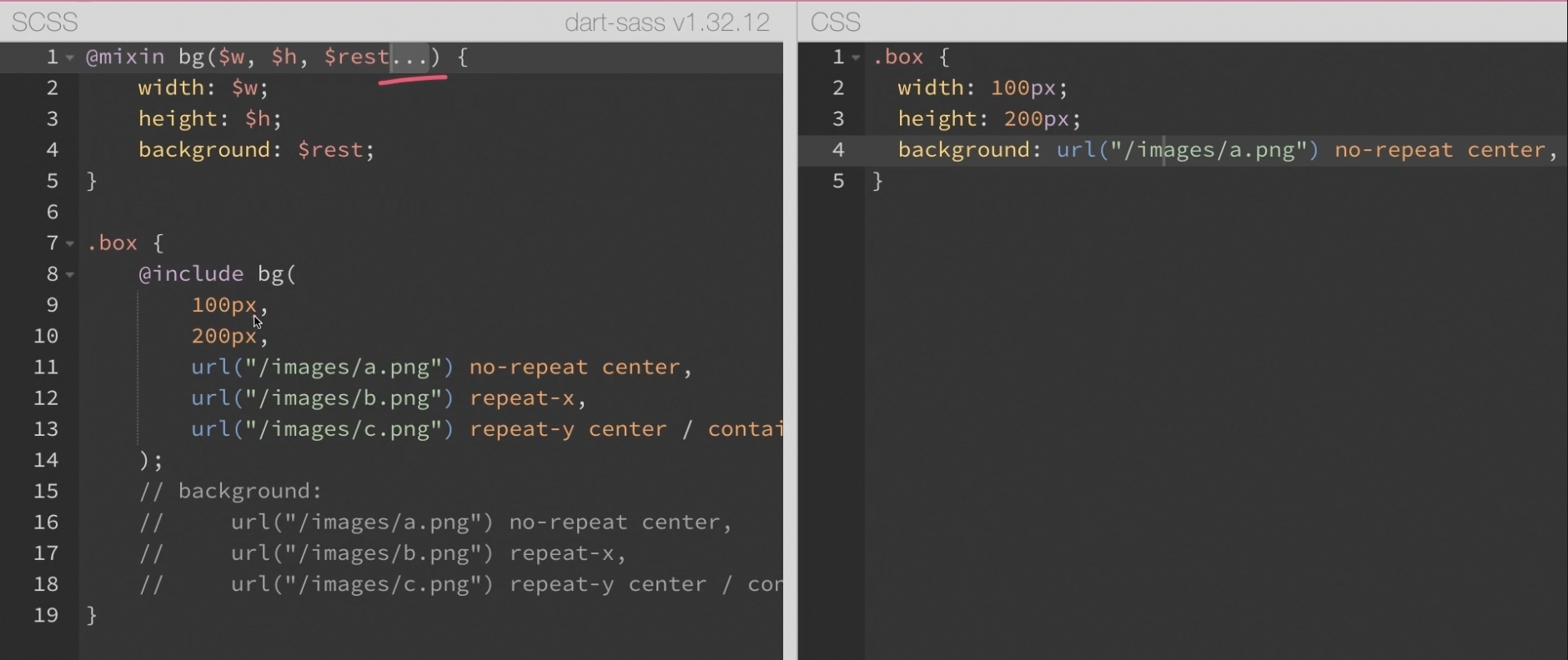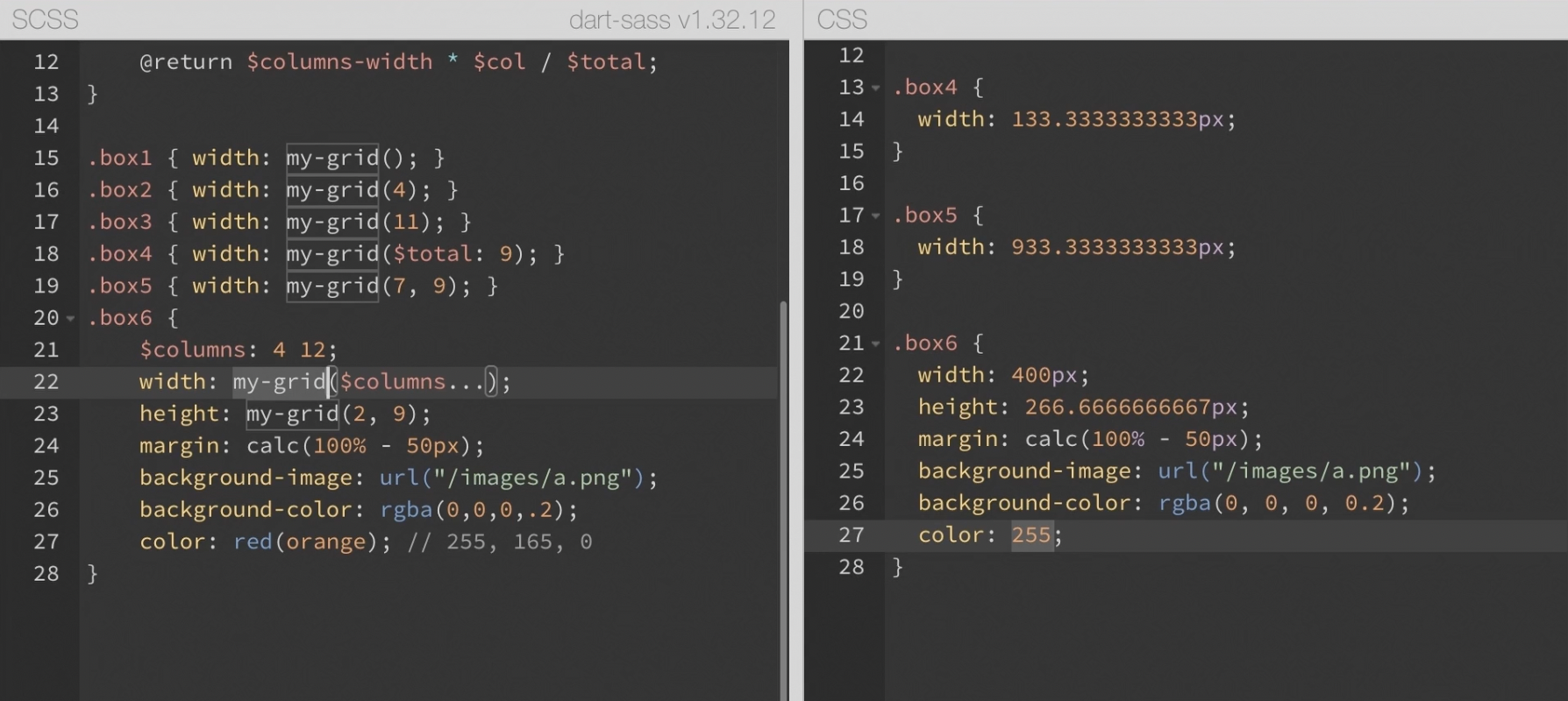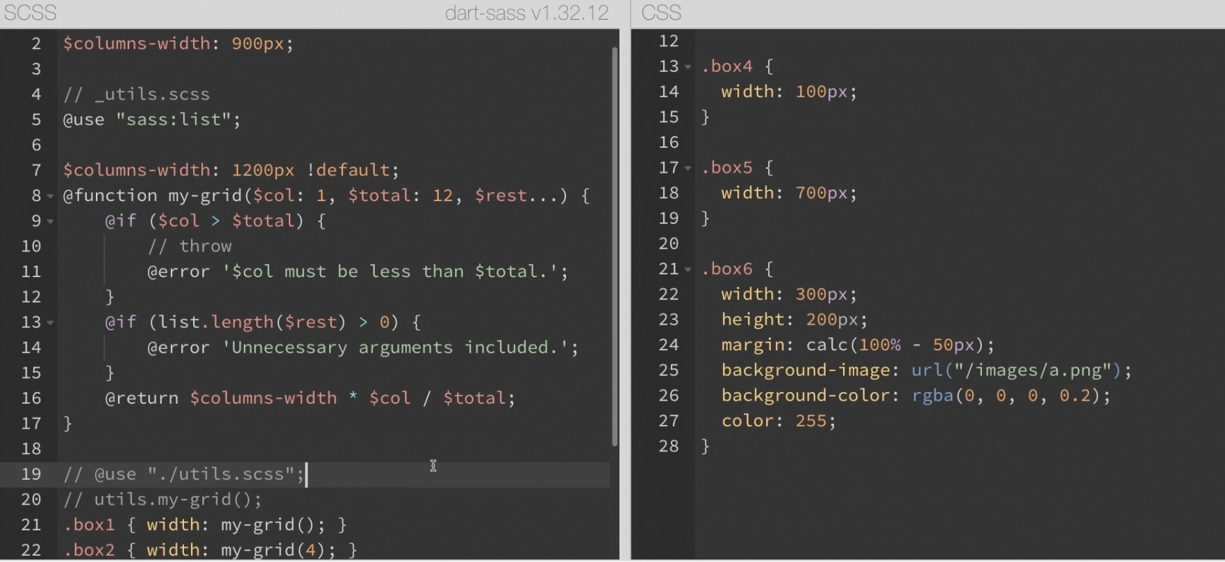 - 매개변수를 만들어 범용화해서 스타일을 재활용 / ($size: 기본값)을 지정해주어야 다른 값을 주었을 때 적용 가능