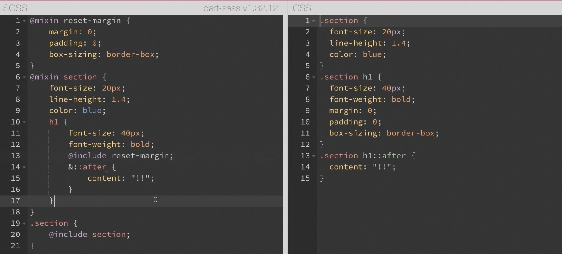 => '선택자 폭발' 부작용 => @mixin 사용 권장